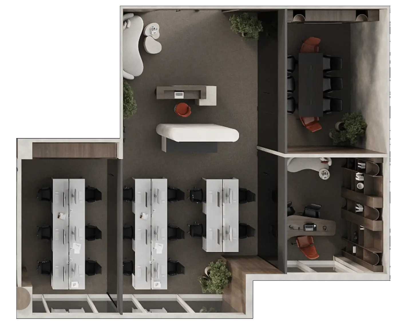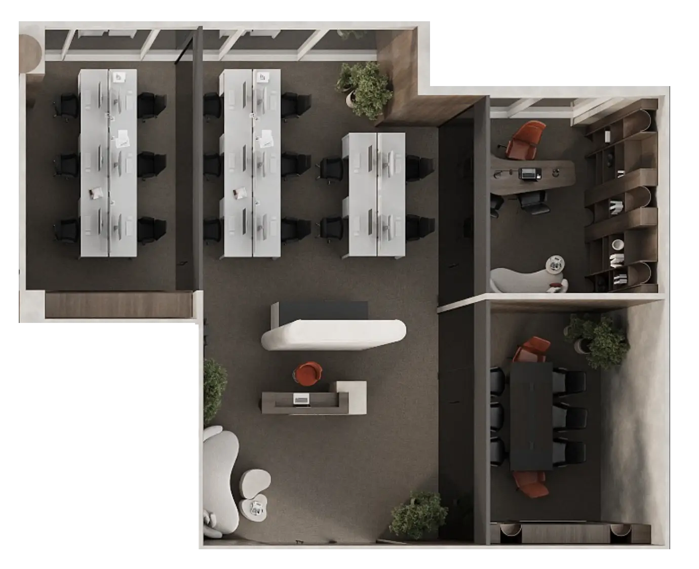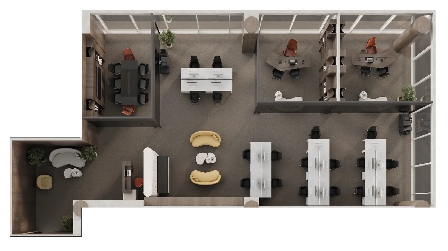 Our meeting rooms are equipped with premium furniture and modern technology to ensure productivity and comfort. The sleek conference table and executive chairs create the perfect setting for strategic discussions, client meetings, and decisive moments.
